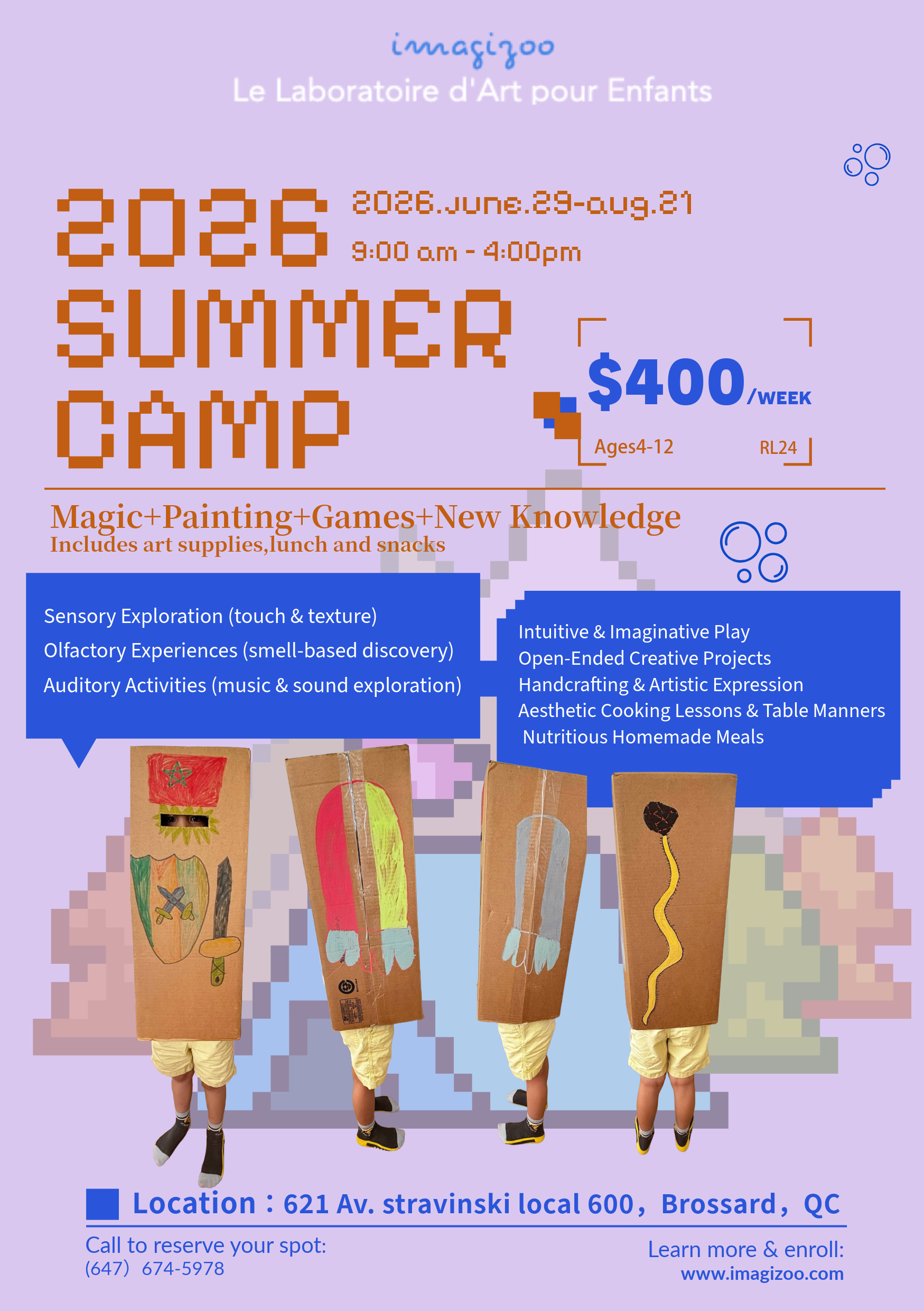 From June 29 to August 21, our regular classes and workshops will pause for an 8-week immersive Art Summer Camp.